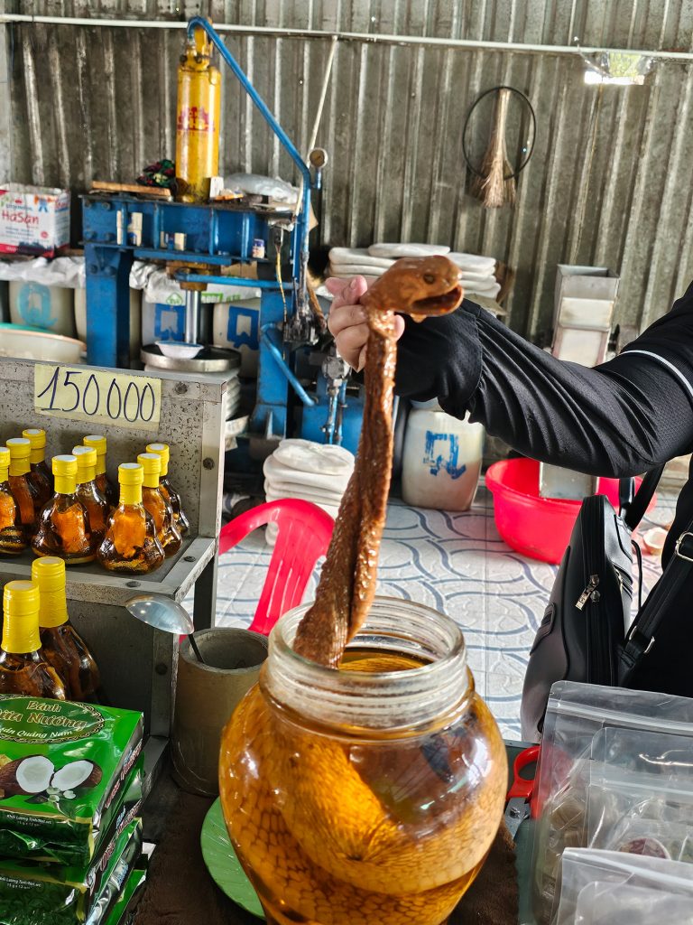A los locales les encanta beber este vino de serpiente. Es una tradición muy normal.